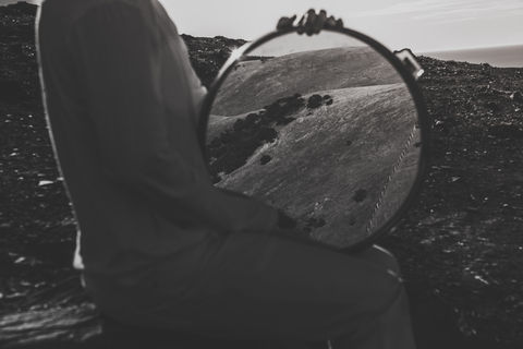 In this series, Reflections, we explore the intersection of self-perception, landscape, and the human condition through the use of a found mirror—an object both literal and metaphorical in its meaning. Set against the rugged and expansive southern coast of Yankalila, the images capture figures engaged in moments of solitude and contemplation, their reflections merging with the surrounding environment.